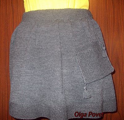 Юбка из акрила. Связана на вязальной машине и спицами. Карман подвесной на шнурках. В талии - от 66 см, Длина - 40 см.