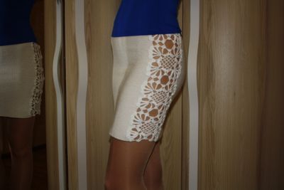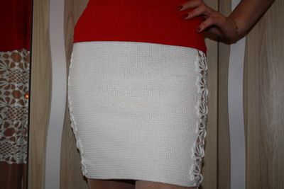 Авторская работа. Вязаная юбка ручной работы выполнена крючком из стрейч пряжи (8% эластик, 92% микрофибра). Прекрасно облегает фигуру, связана плотно, не вытягивается и не просвечивается,в пояс вставлена плотная резинка,что обеспечивает хорошую посадку как на талии, так и на бедрах. Красивые ажурные вставки по бокам) придадут легкую сексуальность и элегантность Вашему образу. Размер:40-42 (подойдет при обхвате бедер до 90 см). Длина 41 см. Возможно выполнение в другом цвете или сочетании цветов по Вашим предпочтениям. Рассчитаю стоимость данной модели вашего размера и длины.