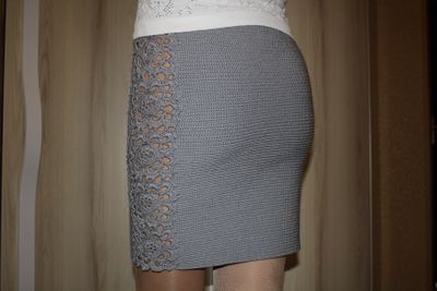 Авторская работа. Вязаная юбка ручной работы выполнена крючком из стрейч пряжи (8% эластик, 92% микрофибра). Прекрасно облегает фигуру, связана плотно, не вытягивается и не просвечивается,в пояс вставлена плотная резинка,что обеспечивает хорошую посадку как на талии, так и на бедрах. Красивые ажурные вставки по бокам) придадут легкую сексуальность и элегантность Вашему образу. Размер:40-42 (подойдет при обхвате бедер до 96 см). Длина 42 см. Возможно выполнение в другом цвете или сочетании цветов по Вашим предпочтениям. Рассчитаю стоимость данной модели вашего размера и длины.