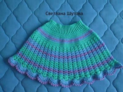 Юбочка от 2 до 4 лет. Длина -26 см. На обхват бёдер 56-58 см. Пряжа-детский акрил. Пояс усилен резинкой. Отправка из Алтайского края.