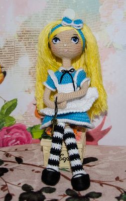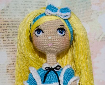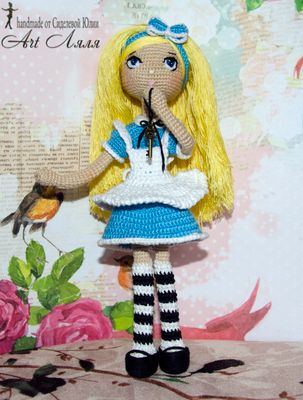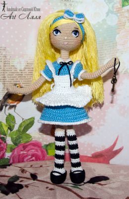 Авторская кукла Алиса. На проволочном каркасе ( подвижны ручки и ножки) Использовалась пряжа хлопок, акрил. Точный повтор невозможен.