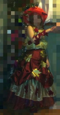Костюм подходит и для праздника осени в дет. саду. В комплект входит: юбка, подбитая органзой, маечка, драпированная органзой, шляпка, драпированная органзой, одна митенка из листиков и пара сшитых листочков для обуви. Все листики пришиты вручную (стежков не видно).