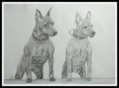 "цвергпинчеры" Работа выполнена простыми карандашами на А3 формате.