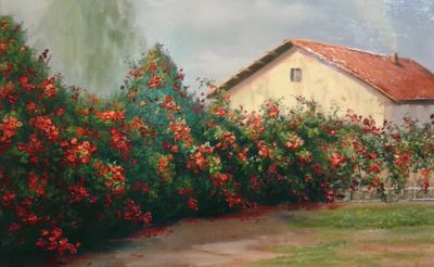 холст на подрамнике,масло 30х40 (розовый куст) тел.8 967 032 94 23 денис