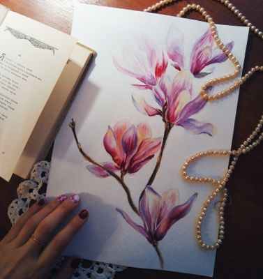 Работа выполнена акварелью. Станет прекрасным украшением для Вашей квартиры. Яркие розовые цветы всегда будут пробуждать весеннее настроение и радовать глаз. Формат А4