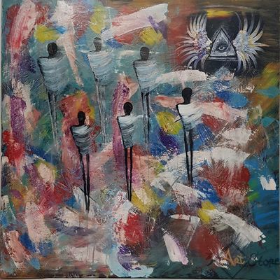 режимы законы порядки, люди марионетки которые повиновались единой власти "не" осознавая этого. размер 100*100см.