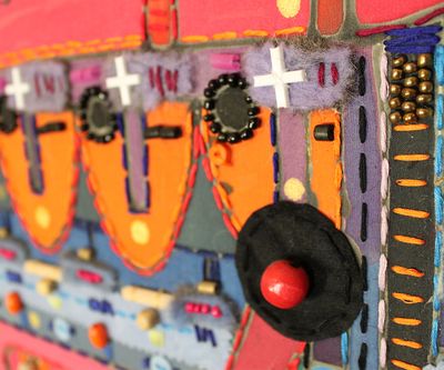 Картина выполнена в технике батик , расшитый мулине , войлоком , бисером , бусинами , металлическими и деревянными заготовками , текстильными элементами . Размер 50 см * 50 см