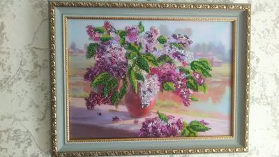 Вышивка. Не полная. Бисер. В багете. Жаль фото не передает всей красоты! Очень живо и ярко смотрится,особенно когда лучи солнца попадают на бисер,картина оживает!