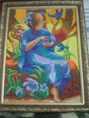 картина вышита крестом,размер 30*38см