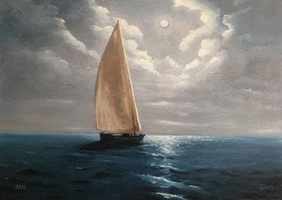 «Яхта в море» 50х70, холст, масло. Доставка по Москве бесплатно, отправка в другие города и страны оговаривается дополнительно.