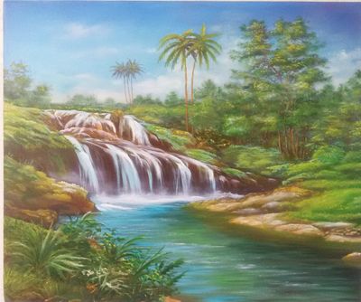 Экзотические пальмы, лёгкие брызги от водопада, молодая тропическая зелень и почти безоблачное небо...что ещё для счастья нужно? Картина, которая освежит ваш интерьер и будет наполнять ваш взор сочными красками лета. Пейзаж "Водопад" станет отличным подарком для друзей, прекрасно дополняющим современный дизайн гостиной радостью и покоем. Если вам подолгу приходится работать в офисе, то именно эта деталь вашего кабинета поможет отвлечься, и на мгновение перенесёт вас в чудесные воспоминания о путешествиях, поездках и отдыхе на природе. Успей купить, ведь картина всего одна!!! Холст, масло. Размер 500мм на 600мм. Оригинал. Без рамки