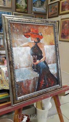 Картина маслом написана на готовом холсте, оформлена в багет. В работе использована структурная паста для создания фактуры поверхности. Работа является свободной копией картин А.Кона. Выполню на заказ в срок около 1,5 месяца.