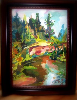 Поздняя весна, солнечно, тепло,небольшой пейзажик передает именно это лесное яркое настртение протекающей тихой рекигуашь, ватман, хороший багет,25на 35 см