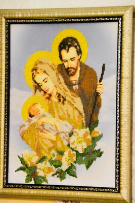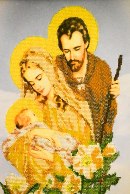 Картина "Святое семейство"вышита из чешского бисера. Рамка - багет, стекло - антиблик. Размер картины 35х43 см.