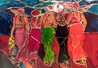 картина создана мною в витражной техники росписью специальными професииональными красками по стеклу, размер стекла а4