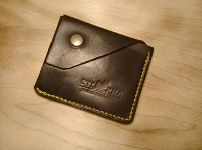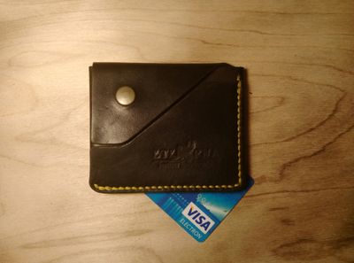 Мини-кошелек, картхолдер с карманом для купюр. Серия мини-кошельков для тех, кто их совсем не носит, но хочет, чтобы карты и деньги хранились в одном месте. Размеры 9,5*8см. Цвет кожи- горький шоколад, прошивка желтой нитью.