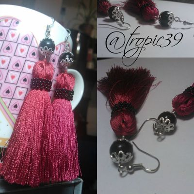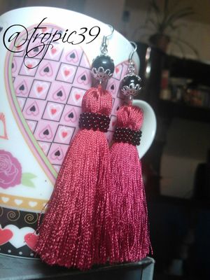 Длина сережек 10 см. Шелковые кисточки в цвете марсала, бусина - имитация нефрита, фурнитура под серебро. Бисер, который оплетает мои кисточки - чешский PRECIOSA. Очень легкие и пухленькие кисточки подойдут к любому Вашему наряду.