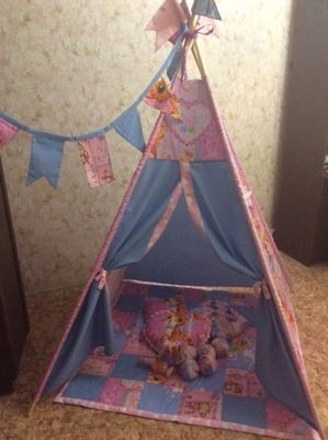 Товар для примера ( есть вигвамы в наличии - смотрите аккаунт). Подарите сказку своему малышу! В комплекте: Вигвам 1.5*1.2*1.2 (российская бязь 100% хлопок), разборные стойки 2.0 сосна, лоскутный коврик 1.2*1.2 (синтепон), флажки на стойки, подушки - игрушки (синтепон) гирлянда из флажков мягкие мячики (5 штук). Цена указана за весь комплект. Комплект в единственном экземпляре,повторение невозможно. Возможен пошив на заказ,подбор тканей, обсуждение комплекта подушек-игрушек. Имеется свой магазин на Ярмарке мастеров. Образцы тканей для пошива вигвама высылаю в личку. Доставка до метро - 100 руб Доставка до адреса внутри МКАД - 300 руб Доставка за МКАД - по договоренности Пересылка по тарифам компании.