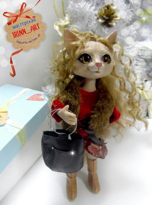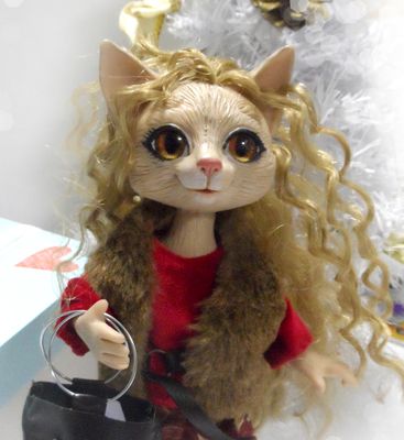Сделана в смешанной технике-шерсть и полимерная глина Living doll.Глазки расписаны вручную. Пушистый хвостик из искуственного меха. Симпатичная и нежная девочка)