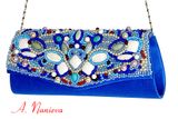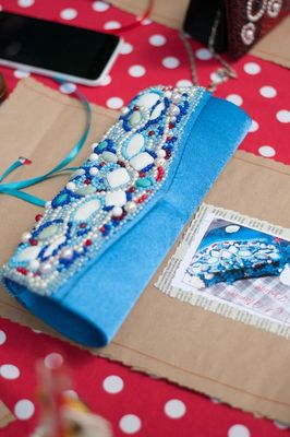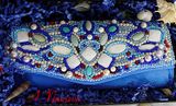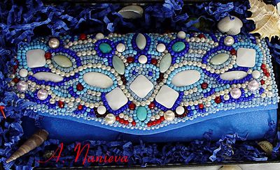 Одна из моих первых работ! Яркий атласный клатч, вышит натуральными камнями(перламутр, бирюза, кораллы, кахолонг, яшма ), бисером и бусами.
