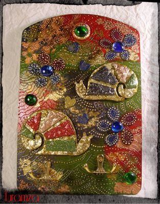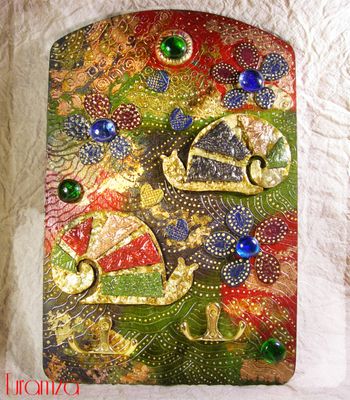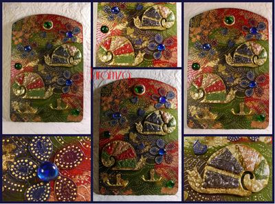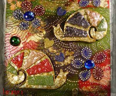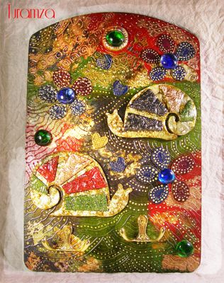Яркая ключница "Улитки в цветах" - очень веселая и яркая! Это не просто улитки в цветах, они еще и влюблены друг в друга. И поталь здорово блестит на ключнице )