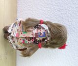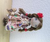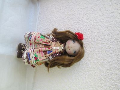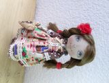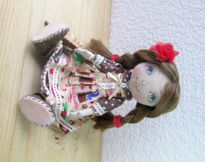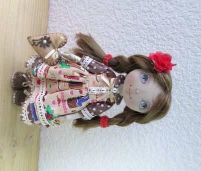 Текстильная куколка ручной работы -кофейная девочка. Очень добрая и позитивная. Тельце и одежда выполнена из хлопка. Наполнитель синтепух. Стоит и сидит самостоятельно. Ручки и ножки на пуговичном креплении. Может немного поворачивать голову. Волосы-трессы, можно аккуратно расчесывать и менять прическу. Вся одежда съемная. Личико расписано акриловыми красками. Эта девочка подарит тепло и любовь новому дому и своей новой хозяйке. Высота 24см У девочки могут в ручке быть цветы,игрушка или сердечко Рекомендации по уходу: сухая чистка , бережное отношение и любовь