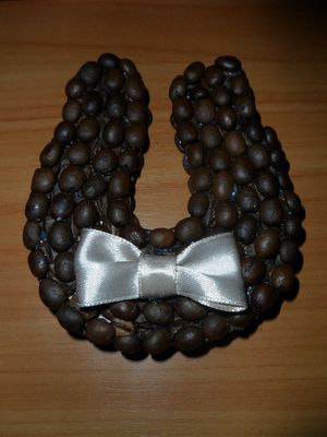 Подкова выполнена из настоящих кофейных зерен, обладая отличным ароматом. Крепится на магнит