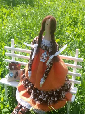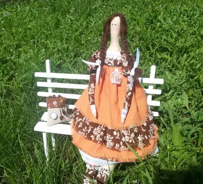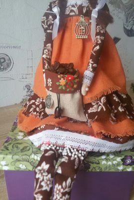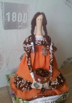 Интерьерная кукла тильда, сидит самостоятельно, стоит на подставке. Прекрасный подарок для ценителей кофе.