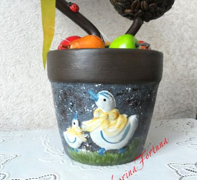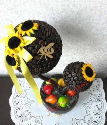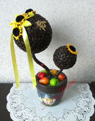 кофейный топиарий "Подсолнушек" высота около 25см. Керамическое кашпо
