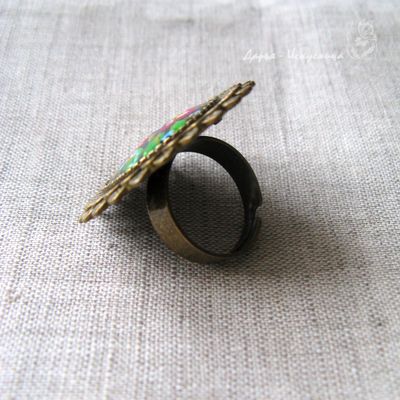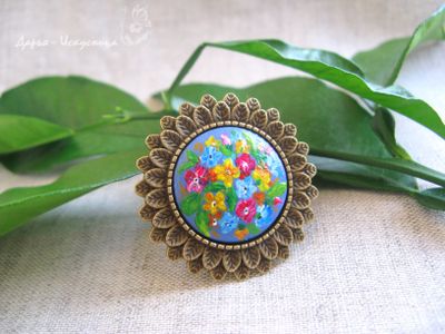 массивное кольцо прекрасно подойдет для стильноймолодой девушки. Изделие расписано акриловыми красками, покрыто лаком Размер универсальный диаметр 32мм, внутренний диаметр 20мм