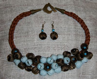 Колье выполнено из полимерной глины, металлической фурнитуры, вощенной нити... В комплет идут сережки.