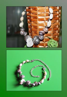 Ракушки-рапаны, перламутровые ракушки, на Мемори проволоке, на цепочке, фурнитура под серебро, длина изделия-60, замок карабин. Колье создано для летнего отдыха и морского побережья