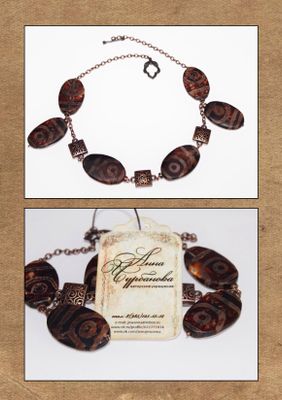 Крупный африканский агат насыщенного шоколадного цвета, резные квадратные элементы, фурнитура по медь, длина изделия- 50см, замок тогл
