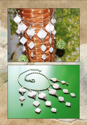 Белый перламутр спадает гроздями на Вашу шею, фурнитура под серебро, длина цепочки-47, длинные грозди по 10 см, замок тогл. В этом колье вы будете просто неотразимы.