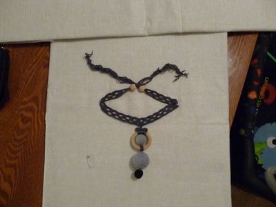 Строгое серое колье/чокер с обвязанными бусинами.