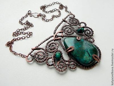 Медное колье с натуральной хризоколлой. Длину цепочки отрегулирую.