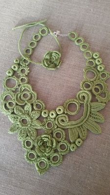 Колье связано кручком в стиле ирландского кружева