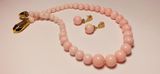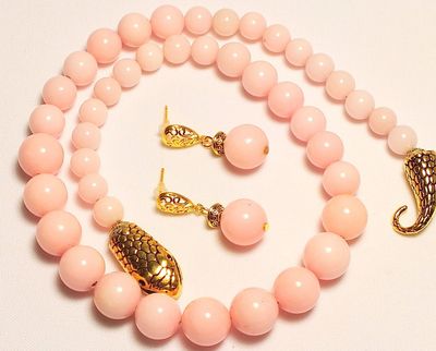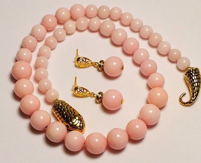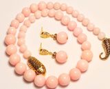 Очаровательный комплект из бус и серег на пуссетах в классическом стиле без лишних деталей из нежно-розового жадеита. Размер: бусы-45 см серьги-3 см