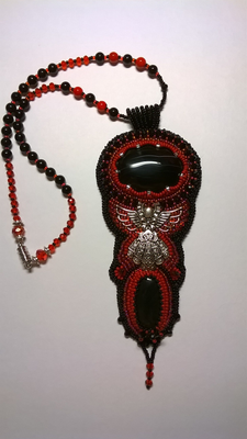 Центральный и нижний кабашоны черный агат,бисер чешский и японский, бусины черный коралл, цитрин. https://vk.com/kseshabiser | Оригинал: http://svoimi-rukami-club.ru/профиль/магазин/4235-ангел/ В комплект можно приобрести серьги "Ангел".