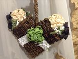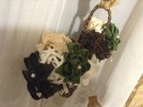 Кашпо из газетных трубочек с цветами. Применяется в интерьере как подвеска.