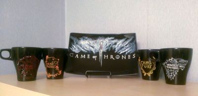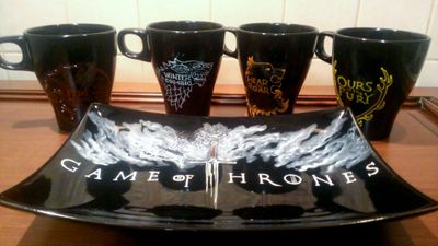 Размер тарелочки 27*17 4 чашки с гербами домов и их девизами