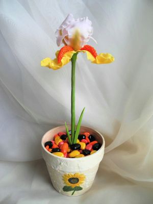В керамическом горшочке мраморная крашенная крошка. Высота цветка вместе с горшком 30 см. Продан. Могу сделать под заказ.