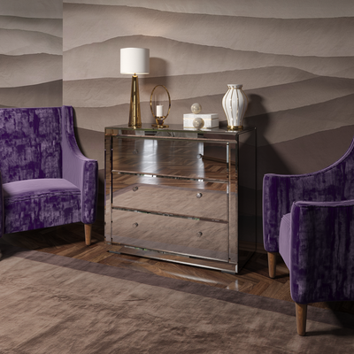 Комод зеркальный материал корпуса: ЛДСП 16 мм (серый) задняя стенка: ДВП 4мм облицовка: зеркало 4мм (серебро) обработка: фацет 10мм фурнитура: шариковые направляющие ножки: 4шт ручки: 6шт. размер:410х920х830