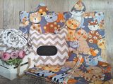 Комплект состоит из: простынь на резинке 120*60см, пододеяльник на потайной молнии 110*145см, наволочка с ушками 40*60см. И это не все! В подарок к комплекту - КОТИК (подушка 30*30см)!😻