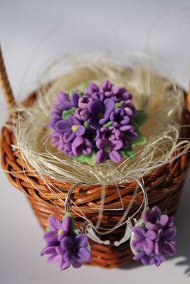 Комплект брош и серьги "Букет сирени"