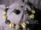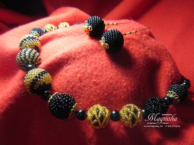 Бусы из шариков, оплетенных чешским бисером, разного диаметра, различных узоров и серьги петельки подчеркнут Вашу индивидуальность. А цвет золота добавит в Ваш наряд немного шика и изысканности Комплект "Черное золото" для тех, кто любит изысканность и шик Чешский бисер, акриловые бусины, фурнитура под золото Бусы 50 см +удлинение Серьги 6 см