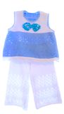 Изготовление: Готовая работа Размеры 104 Материалы хлопок 100% Описание Комплект состоит из топика и брючек капри. Модель выполнена на основе машинного трикотажа, для отделки использованы: ажур, кружево крючком. При изготовлении использована пряжа хлопок 100%. Бренд: Studio Vita700