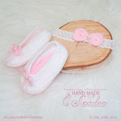 Пинеточки и повязочка на голову на нежной кружевной повязке. Хороший подарок для новорожденной красавицы. Возраст - от 0 месяцев 👼Возможно изготовление в любом цвете/размере.