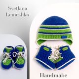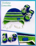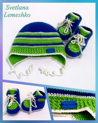 Шапочка и пинетки, связаны из мягкой мериносовой шерсти.