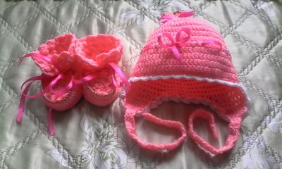 Шапочка и пинетки,шапочка и манишка для новорожденного малыша. Любые украшения. Именные. В любой цветовой гамме. На заказ.
